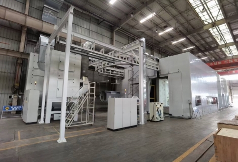 涂裝噴粉線工藝流程分為:前處理、噴粉涂裝、加熱固化。前處理有手動簡易工藝和自動前處理工藝,后者又分自動噴淋和自動浸噴兩種工藝。工件在噴粉之前必須進(jìn)行表面處理去油去銹。
