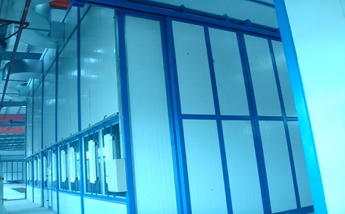 變壓器散熱片懸掛鏈?zhǔn)絿娖嵘a(chǎn)線水簾噴漆室 對(duì)于連續(xù)流水作業(yè)的涂裝噴漆室,漆霧處理一般采用濕式。雖然干式噴漆室隨著漆霧濾材的改進(jìn)而得到了越來(lái)越廣泛的應(yīng)用,但由于漆霧附著飽和后依然需要手工處理或者更換,無(wú)疑將造成設(shè)備開(kāi)工率的下降,而大批量涂裝作業(yè)漆霧的飛散量將更多,增加了濾材處理更換的次數(shù)