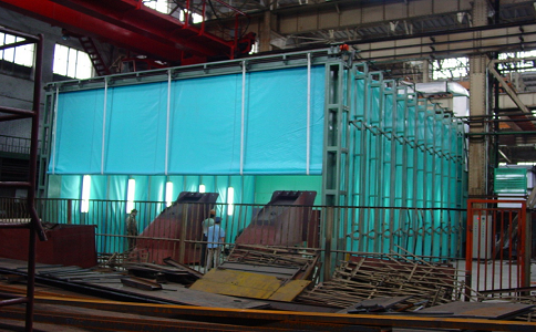 涂裝線中噴漆房?設(shè)備由室體、空調(diào)供風(fēng)系統(tǒng)、排風(fēng)及水旋式漆霧處理系統(tǒng)、空氣凈化系統(tǒng)及電控系統(tǒng)組成。 房體是由漆房主體、大門(mén)、鋼骨架、照明裝置、安全門(mén)、排風(fēng)風(fēng)道等部分組成的封閉空間,形成涂裝作業(yè)有限場(chǎng)所。