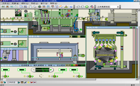 鋼板預(yù)處理 涂裝生產(chǎn)線 上位機(jī)動(dòng)態(tài)模擬監(jiān)控系統(tǒng)(監(jiān)控中心) 整個(gè)設(shè)備采用上位機(jī)動(dòng)態(tài)模擬監(jiān)控系統(tǒng)(如下圖 監(jiān)控中心),以便能夠 監(jiān)視全線的工作狀態(tài), 對(duì)全線實(shí)行優(yōu)化控制。采用動(dòng)態(tài)模擬監(jiān)控系統(tǒng)大大提高了系統(tǒng)的機(jī)電一體化水平,并且使系統(tǒng)從一套“黑箱”系統(tǒng)變成可視并且便于操控的系統(tǒng)。