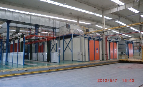 噴粉 涂裝生產(chǎn)線 粉末涂料通過靜電粉末噴涂設(shè)備噴涂在工件表面,在靜電作用下,粉末均勻吸附在工件表面,形成粉末涂料;粉末涂料經(jīng)高溫烘烤、整平、固化后成為不同效果的最終涂料。噴涂效果在機(jī)械強(qiáng)度、附著力、耐腐蝕性、耐老化性等方面優(yōu)于噴涂工藝。