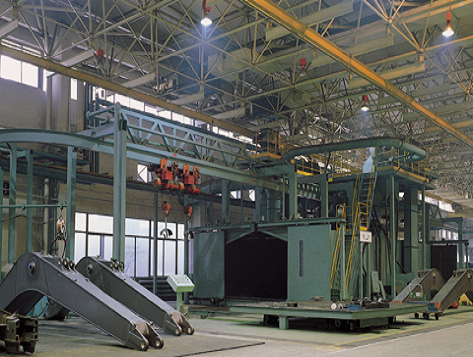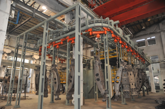 懸鏈通過式拋丸機(jī)按工件輸送方式可分為連續(xù)式、步進(jìn)式、積放式,主要適用于大批量的結(jié)構(gòu)、鑄造、鍛造、鋁合金等工件的表面清理強(qiáng)化,去除銹、氧化皮、粘沙、污物等。該設(shè)備可實(shí)現(xiàn)定點(diǎn)裝卸、定點(diǎn)拋射工序,單點(diǎn)吊重范圍廣:50~2000kg。