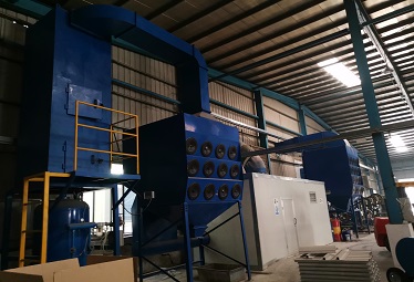 由除塵器、煙囪及吸排塵管路、脈沖閥、脈沖儀、除塵風(fēng)機(jī)組成;除塵器九通一般建議濾筒除塵,客戶也可選擇濾袋式除塵器;九通濾筒濾料采用唐納森技術(shù)生產(chǎn)的新型材料,過濾精度:5um-10um,過濾阻力:≦46Pa,過濾效率:≧99.99%;濾筒做成折疊的圓筒形,1個標(biāo)準(zhǔn)濾筒過濾面積為15㎡,而同樣體型的布袋式除塵器的過濾面積僅有1㎡,大大減小了除塵器的體積;采用脈沖閥反吹清灰方式,當(dāng)高速氣流通過文氏管誘導(dǎo)器誘導(dǎo)了數(shù)倍于一次風(fēng)的周圍空氣(稱為二次風(fēng))進(jìn)入濾袋,造成濾袋內(nèi)瞬時正壓,實現(xiàn)清灰的目的;濾筒按統(tǒng)一標(biāo)準(zhǔn)制造,采用高速連接,使濾筒拆裝十分方便;排風(fēng)煙囪采用1.5mm以上鋼板制作,結(jié)構(gòu)上在保證排風(fēng)速率的情況下為利于抗風(fēng)設(shè)計成微錐形,提高設(shè)備的使用壽命!排風(fēng)煙囪高度不低于15米,實際情況根據(jù)甲方車間高度及現(xiàn)場情況進(jìn)行調(diào)整,保證符合國家環(huán)保標(biāo)準(zhǔn)。 | ![]() |