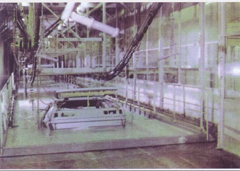 電泳涂裝線前處理大多采用浸漬式與噴射式處理方式(也可采用噴射與浸漬結(jié)合方式),其主要目的是通過(guò)化學(xué)液體(硫酸、硝酸)以浸泡或噴射的方式,與工件表面的氧化物、油脂等產(chǎn)生化學(xué)反映來(lái)達(dá)到除油、脫脂、除銹、水洗、純水洗的目的。電泳采用陰極電泳或陽(yáng)極電泳,陰極電泳與陽(yáng)極電泳比較,陰極電泳在技術(shù)上更成熟,其泳后漆膜附著力及防腐蝕力比陽(yáng)極電泳更強(qiáng)。泳后裝飾涂料可采用噴朔或裝飾性油漆。自動(dòng)輸送系統(tǒng)前處理一般采用自行葫蘆或積放式輸送設(shè)備,前處理后轉(zhuǎn)線一般采用地鏈滑撬、懸掛輸送鏈、總行葫蘆等輸送方式。具體需要根據(jù)工件情況決定。其主要決定因素:工件大小、形狀、重量、材質(zhì)等。