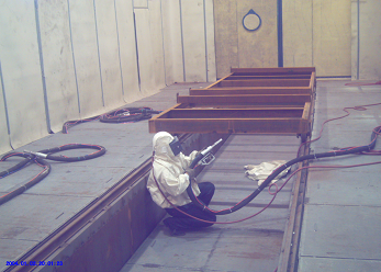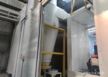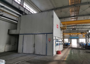 此噴涂線中工件輸送一般采用電動(dòng)軌道車(chē)或天車(chē)為輸送方式。該噴涂線主要用于金屬工件、并且材質(zhì)較厚、工件較大的設(shè)備、鋼板,如鑄鍛件、鋼結(jié)構(gòu)件等。1噴1烘一般適合表面要求較低的設(shè)備(一般不建議采用),一般情況下,由于工件較大、重,生產(chǎn)量不高的情況下,噴砂(丸)、除塵都在噴砂房?jī)?nèi)處理。噴底漆、面漆、烘干都在噴烘一體房?jī)?nèi)進(jìn)行。